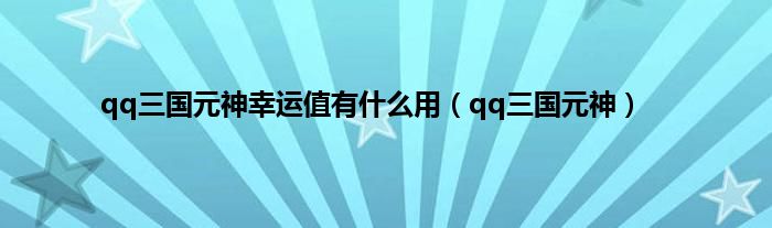 以上就是【qq三国元神幸运值有什么用,qq三国元神】相关内容。