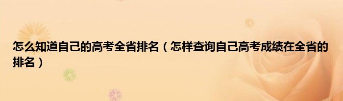 本文,怎么知道自己的高考全省排名,怎样查询自己高考成绩在全省的排名到此就分享完毕,希望对大家有所帮助。
