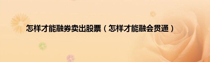 以上就是【怎样才能融券卖出股票,怎样才能融会贯通】相关内容。
