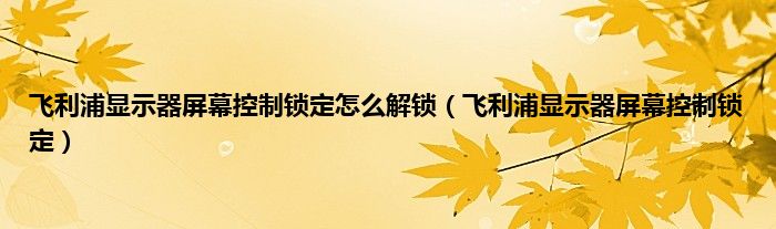 以上就是【飞利浦显示器屏幕控制锁定怎么解锁,飞利浦显示器屏幕控制锁定】相关内容。