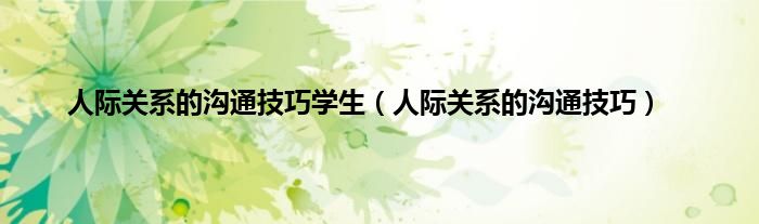 以上就是【人际关系的沟通技巧学生,人际关系的沟通技巧】相关内容。