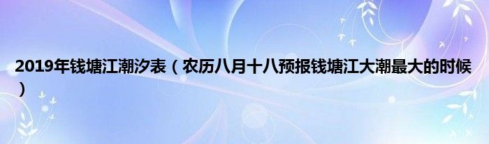 大家好,综合小编来为大家讲解下。2019年钱塘江潮汐表,农历八月十八预报钱塘江大潮最大的时候这个很多人还不知道,现在让我们一起来看看吧!