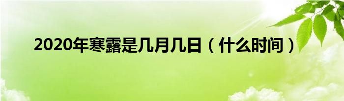 大家好,综合小编来为大家讲解下。2020年寒露是几月几日,什么时间这个很多人还不知道,现在让我们一起来看看吧!