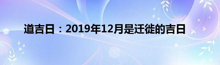 大家好,综合小编来为大家讲解下。道吉日:2019年12月是迁徙的吉日这个很多人还不知道,现在让我们一起来看看吧!