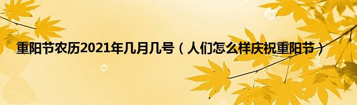 大家好,综合小编来为大家讲解下。重阳节农历2021年几月几号,人们怎么样庆祝重阳节这个很多人还不知道,现在让我们一起来看看吧!