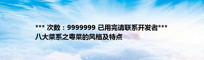 本文*** 次数:9999999 已用完请联系开发者*** 八大菜系之粤菜的风格及特点到此分享完毕,希望对大家有所帮助。