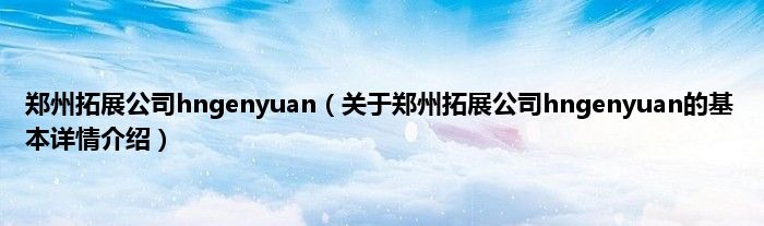 本文关于郑州拓展公司hngenyuan的基本详情介绍就讲解完毕,希望对大家有所帮助。