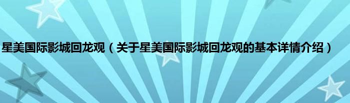 星美国际影城回龙观(关于星美国际影城回龙观的基本详情介绍)