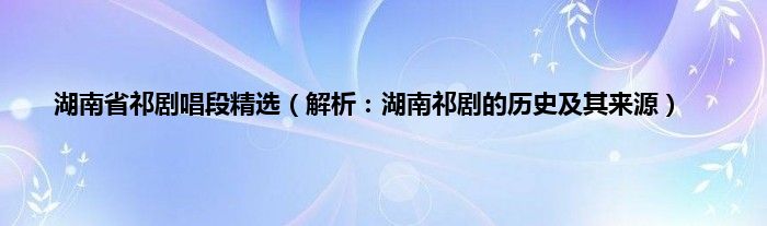 本文湖南省祁剧唱段精选,解析:湖南祁剧的历史及其来源到此分享完毕,希望对大家有所帮助。