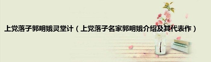 本文上党落子郭明娥灵堂计,上党落子名家郭明娥介绍及其代表作到此分享完毕,希望对大家有所帮助。