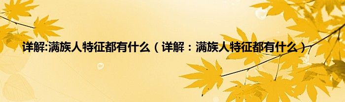 大家好,综合小编来为大家讲解下。详解:满族人特征都有什么,详解:满族人特征都有什么这个很多人还不知道,现在让我们一起来看看吧!
