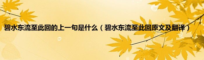欢迎观看本篇文章,小升来为大家解答以上问题。碧水东流至此回的上一句是什么,碧水东流至此回原文及翻译很多人还不知道,现在让我们一起来看看吧!