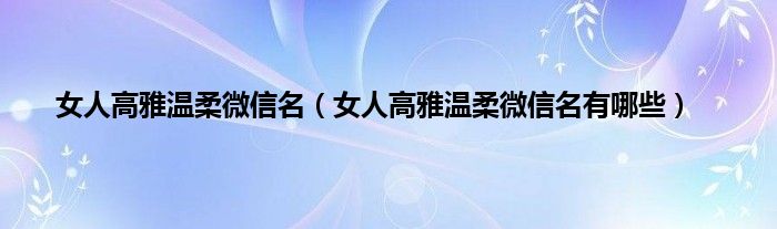欢迎观看本篇文章,小升来为大家解答以上问题。女人高雅温柔微信名,女人高雅温柔微信名有哪些很多人还不知道,现在让我们一起来看看吧!
