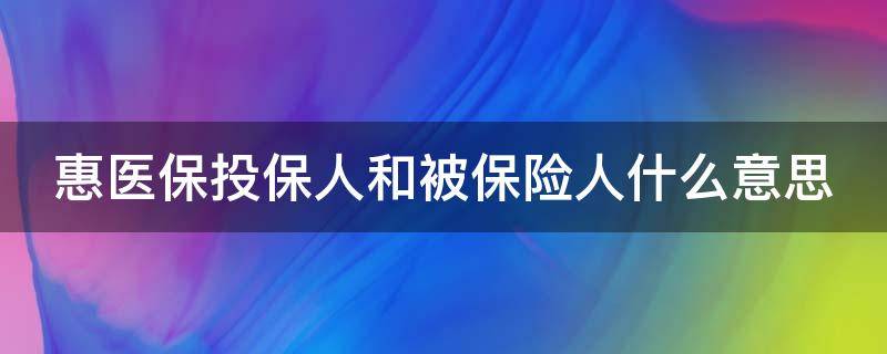惠医保投保人和被保险人什么意思