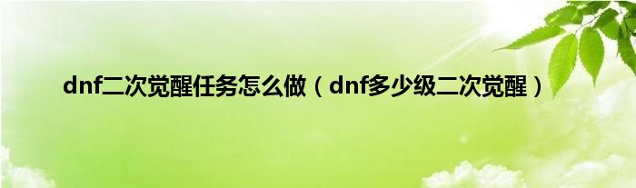 dnf二次觉醒任务怎么做(dnf多少级二次觉醒)