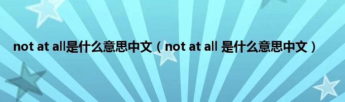 以上就是【not at all是什么意思中文,not at all 是什么意思中文】相关内容。