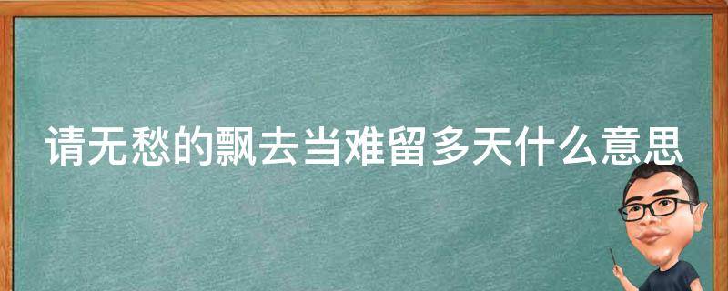 请无愁的飘去当难留多天的意思是请没有忧愁地离开,难以再逗留。请无愁的飘去,当难留多天是歌词出自歌曲《不会哭于你面前》。《不会哭于你面前》杨采妮第一张专辑《爱的感觉》的派台歌,1993年12月发行。国语版《不小心的真心话》,收录于1995年发行专辑《笑着流泪》。原曲为中岛美雪的《雨夜の使者》。杨采妮,1974年5月23日出生于中国台湾省台北市,中国香港长大,中国香港女演员、歌手。1992年,杨采妮签约成为EMI唱片公司的歌手;1993年发行第一张唱片《爱的感觉》,获得十大劲歌金曲最受欢迎新人奖金奖。