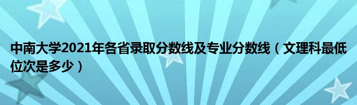 大家好,乐儿来为大家解答以下问题,中南大学2021年各省录取分数线及专业分数线,文理科最低位次是多少很多人还不知道,现在让我们一起来看看吧!