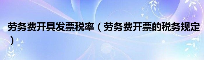 劳务费开具发票税率(劳务费开票的税务规定)