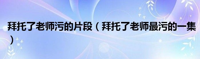 拜托了老师污的片段(拜托了老师最污的一集)