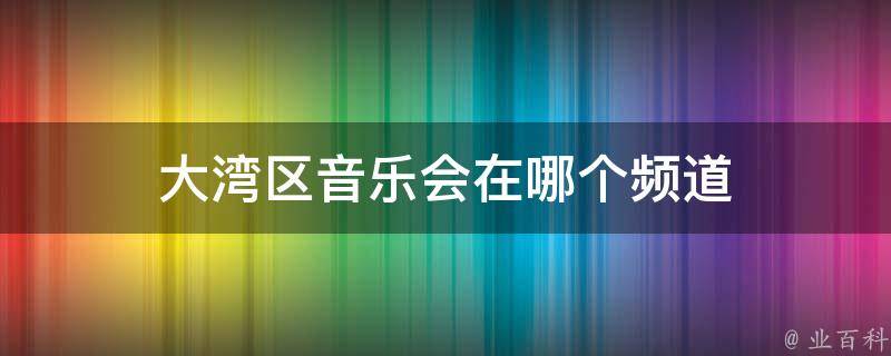 大湾区音乐会在央视综合频道、综艺频道、音乐频道。由中央广播电视总台、广东省人民政府、香港特别行政区政府、澳门特别行政区政府共同主办的《2023扬帆远航大湾区音乐会》于2023年3月17日20点档,在央视综合频道、综艺频道、音乐频道等电视频道,和央广音乐之声、文艺之声、大湾区之声、香港之声等电台,以及央视新闻、央视频、云听、央视网等平台播出。