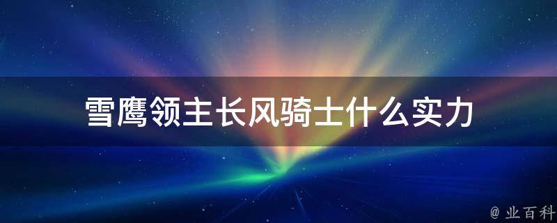 雪鹰领主长风骑士实力达到了超凡境界的修士,他是圣阶排行榜中位列第一的半神级存在。《雪鹰领主》讲述了异界大陆里的主角东伯雪鹰为救出因违背家族规矩而被母族墨阳家族关禁闭的父母,一路披荆斩棘,最终历练成一代强者的故事。有别于传统的东方和西方玄幻小说,是东方玄幻小说的实力等级制和西方玄幻小说的元素合成,是异世界题材的小说。