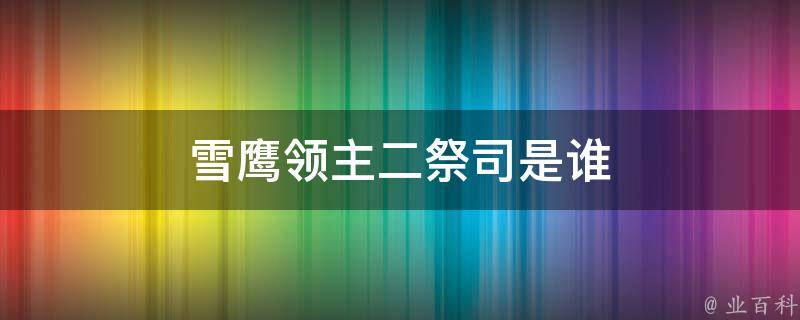 雪鹰领主二祭司是奥兰,扮演者为陈扬。陈扬,中国内地男演员,1992年11月14日出生于中国上海。2017年,毕业于上海戏剧学院表演系,获戏剧表演硕士学位。曾出演舞台剧《开天辟地》《鉴真东渡》《梦回召稼楼》《流星》《寻常》《无稽之谈》《石库门情缘》《两分铜币》《迷局》等。