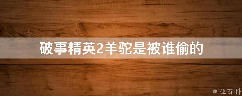 破事精英2羊驼是被小李偷的。小李是破案小队的一名成员,他利用在集训营时学会的摔跤技巧,将羊驼推下悬崖致死。原本小李是为了举报集训营成员涉嫌违规事件而被破案小队招募进来的,悬殊的能力让他觉得自己被群体孤立,为了抢回尊严,便做出了这样的行为。