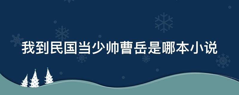 我到民国当少帅曹岳是哪本小说