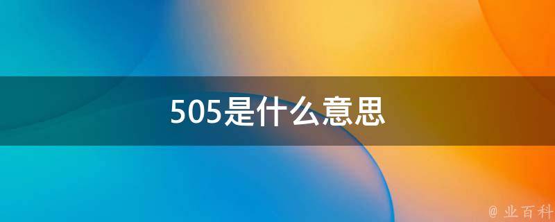 1、505在计算机中表示版本不受支持,HTTP 505错误是HTTP状态码的一种,表示“HTTP版本不受支持”,当服务器不支持请求中所使用的HTTP协议版本时就会返回此错误,最为常见的是HTTP/1.1。