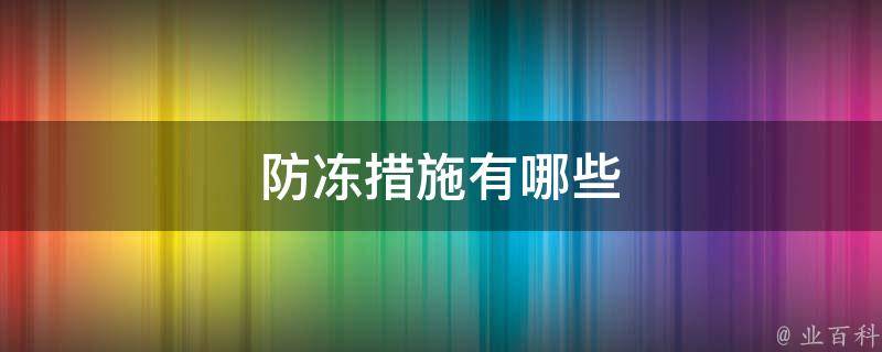 防冻措施有哪些