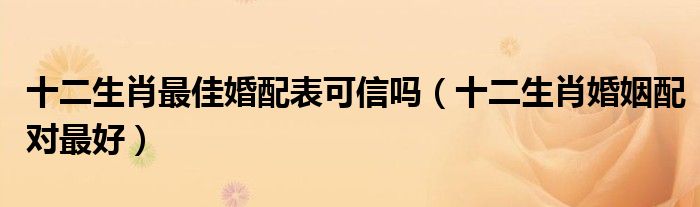 关于十二生肖最佳婚配表可信吗,十二生肖婚姻配对最好这个很多人还不知道,今天菲菲来为大家解答以上的问题,现在让我们一起来看看吧!