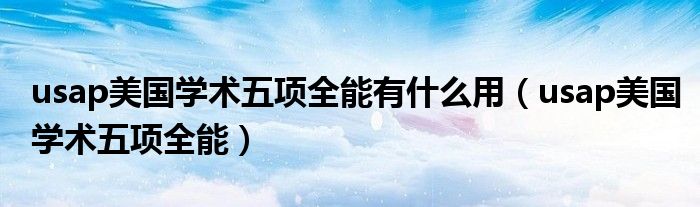 关于usap美国学术五项全能有什么用,usap美国学术五项全能这个很多人还不知道,今天菲菲来为大家解答以上的问题,现在让我们一起来看看吧!