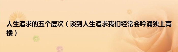 大家好,小联来为大家解答以上的问题。人生追求的五个层次,谈到人生追求我们经常会吟诵独上高楼这个很多人还不知道,现在让我们一起来看看吧!
