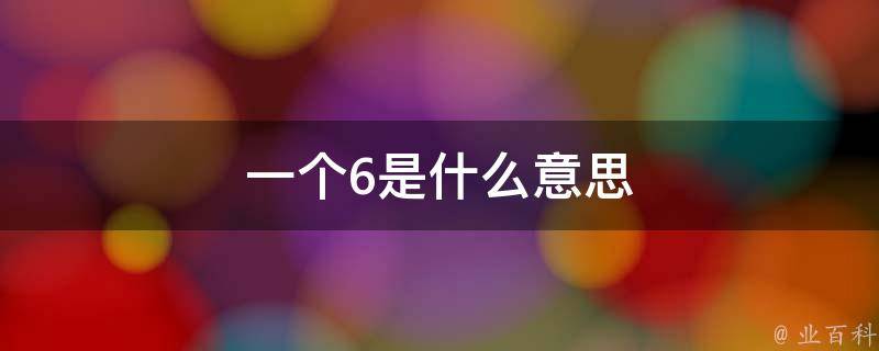 一个6用来表示某人或某事物在某个领域或方面非常出色、厉害或强大。6等同于汉语词语六。六在中国是一个吉祥数字,六六大顺就具有祝福别人事业发达的意思。6是物质世界的宇宙数字,因此埃及人选择这个数字来代表时间和空间。在《易经》中6代表阴爻。6的罗马数字是Ⅵ,英文是six。