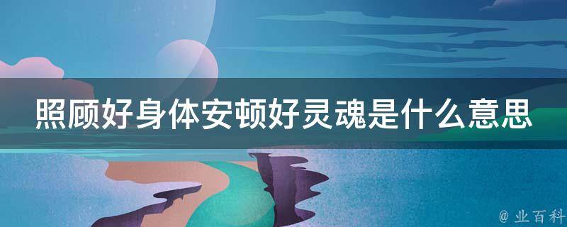照顾好身体安顿好灵魂意思是要好好照顾自己,要保护自己的身体,身体健康比什么都重要。并且要积累精神财富、注重内在修养,让生命的分量越来越厚重。因为,缺乏智慧的生命,就是一具躯壳;灵魂一旦扭曲,就会滋生无端的心魔。以学问充实头脑,人生才能生机盎然;用慈悲氤氲心灵,生命才会绽放绚丽的花朵。