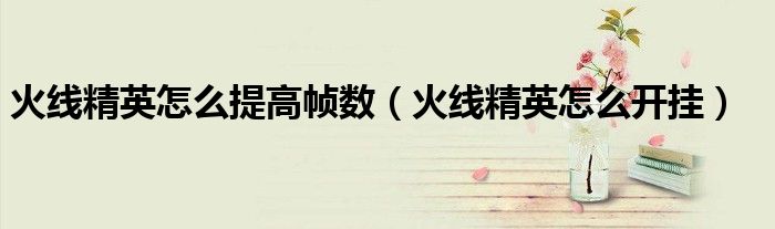火线精英怎么提高帧数(火线精英怎么开挂)