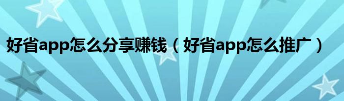 好省app怎么分享赚钱(好省app怎么推广)