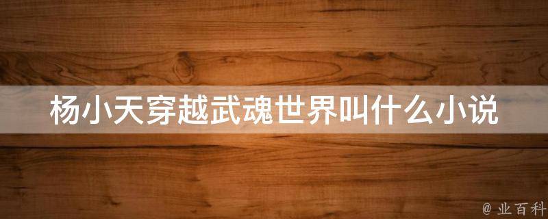 杨小天穿越武魂世界叫《神剑无敌》。小说作者是神见,讲述了杨小天穿越武魂世界,觉醒超级武魂,却被误认为是二级武魂。但是,杨小天却以逆天的成长速度,不断刷新世人的认知。小说可以在笔下文学、起点中文网、笔趣说等平台进行阅读。