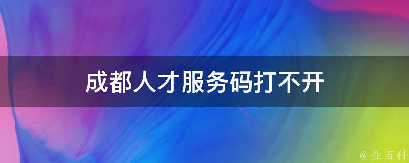 成都人才服务码打不开可能与数据跨系统访问时网络或接口不稳定有关,也可能是系统内部问题导致。建议尝试重启设备、刷新网页,或者尝试使用其他网络环境进行访问。如果问题仍然存在,可以与成都人才服务机构联系,以获得更具体的帮助和支持。