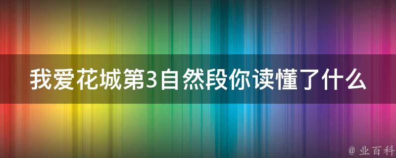 我爱花城第3自然段阅读后,读者可以深刻感受到花城的魅力,并对花城的历史和文化有更深的了解。这一自然段主要描绘了花城的春季和秋季,突出表现了作者对花城的热爱以及花城的绚丽多彩。作者用一系列的描绘手法,如满城盛开的花朵,如火如荼,犹如一幅美丽的画卷,形象生动地描绘出花城春天的生机勃勃和秋天的丰收景象。同时,作者也通过描述花城的历史和文化,展现了这座城市的底蕴。