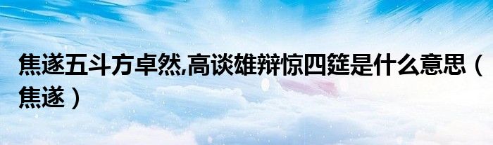 最佳答案大家好,小联来为大家解答以上的问题。焦遂五斗方卓然,高谈雄辩惊四筵是什么意思,焦遂这个很多人还不知道,现在让我们一起来看看吧!1、焦遂的拼音如下jiāo suí 关于中文转换成拼音拼音是拼读音节的过程。2、就是按照普通话音节的构成规律。3、把声母、韵母急速连续拼合并加上声调而成为一个音节。...
