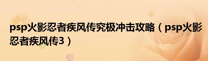 大家好,我是小科,我来为大家解答以上问题。psp火影忍者疾风传究极冲击攻略,psp火影忍者疾风传3很多人还不知道,现在让我们一起来看看吧!