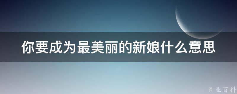 你要成为最美丽的新娘是一句祝福语,表达了对女性即将步入婚姻殿堂的祝福和美好愿景。婚礼是女性一生中最重要的时刻之一,这句话的含义是希望女性在婚礼上展现出自己最美丽的一面,成为最令人瞩目和令人难忘的新娘。