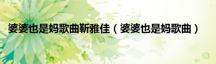 大家好,我是小科,我来为大家解答以上问题。婆婆也是妈歌曲靳雅佳,婆婆也是妈歌曲很多人还不知道,现在让我们一起来看看吧!
