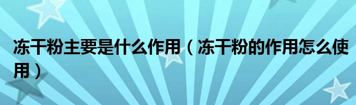 大家好,我是小科,我来为大家解答以上问题。冻干粉主要是什么作用,冻干粉的作用怎么使用很多人还不知道,现在让我们一起来看看吧!