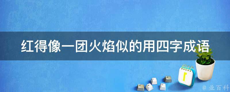 红得像一团火焰似的四字成语:红叶似火,意思是描写秋季香山红叶的颜色像火一样的红。例句:红叶似火,如热情的火焰在秋日里燃烧,把心灵之美尽情洒泼。类似的词语有:红红火火、骄阳似火。