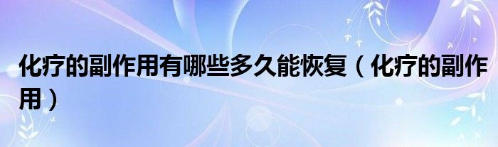 大家好,乐天来为大家解答以下的问题,化疗的副作用有哪些多久能恢复,化疗的副作用很多人还不知道,现在让我们一起来看看吧!