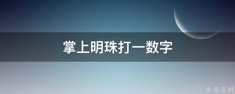 掌上明珠打一数字是0,掌上明珠意思是捧在手掌上的珍珠,古义原比喻十分受宠的人,今义后多比喻深受父母疼爱的儿女,有时也比喻为人所珍爱的物件。珍珠是圆的,像0一样,所以掌上明珠打一数字是0。