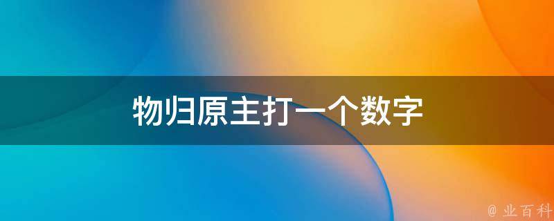 物归原主打一个数字是5。因为物归原主的物与数字5是谐音,所以,物归原主打一个数字是5。在数字谐音中,5代表我、无,也可以理解为不分你我,另外,0代表圆满、完美、无尽;1代表唯一、你、起点;2代表爱、两人世界。